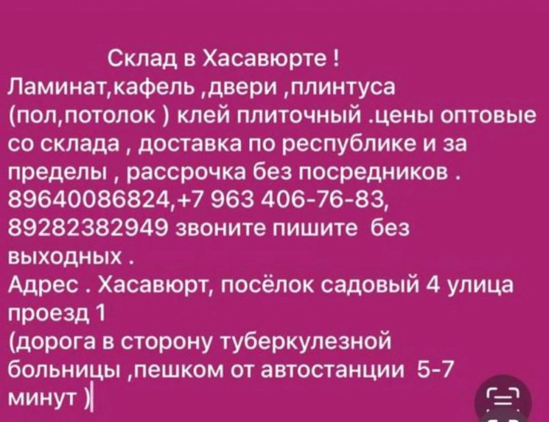 Адрес:г.Хасавюрт, п.Садовой, ул.4, пр-д 1
